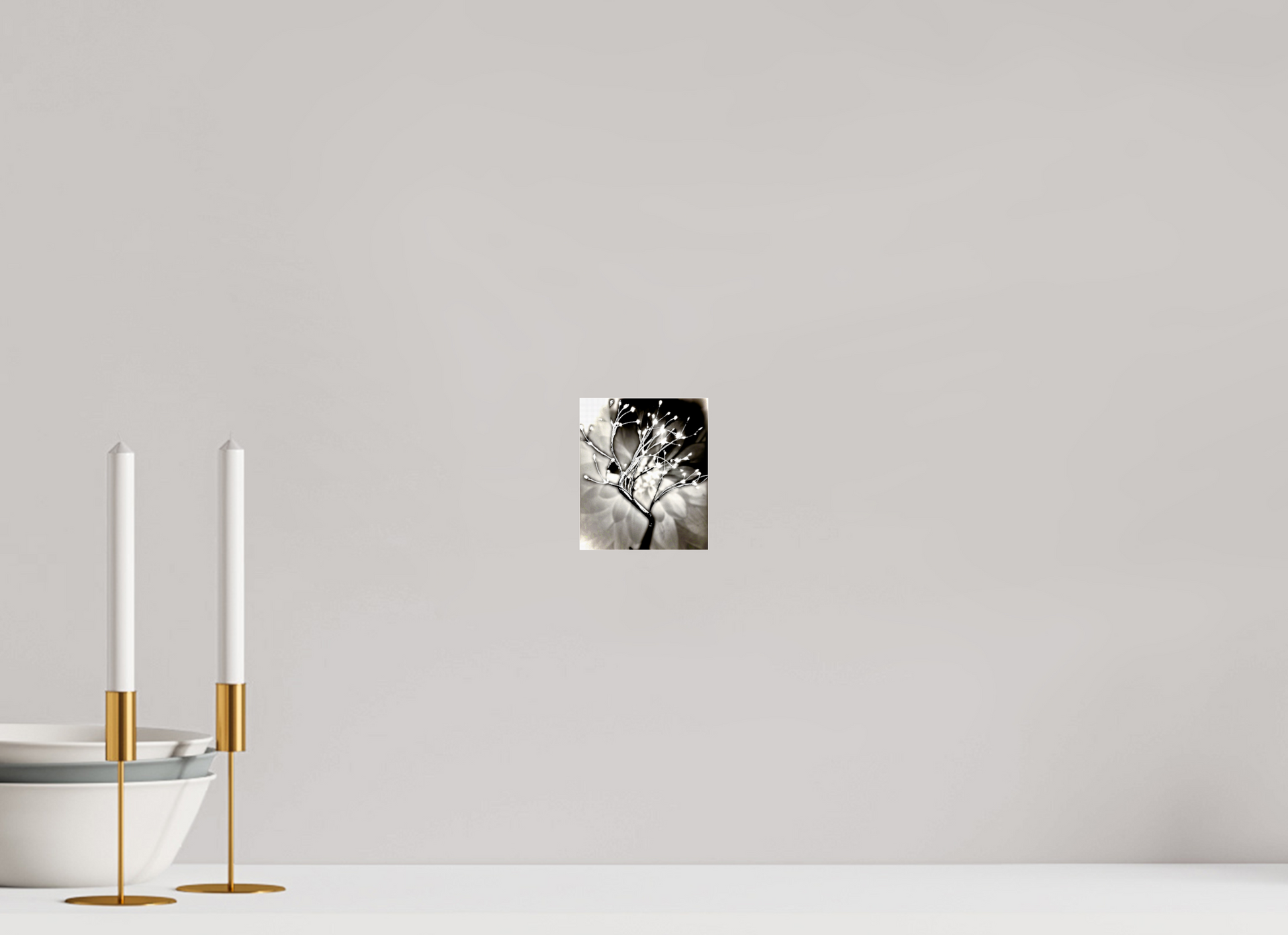 Cette oeuvre présente un arbre stylisé dont les branches scintillantes capturent lalumiére, créant une atmosphère magique. Le fond flou, riche en texture florales, accentue la beauté organique du sujet.Les contrastes entre lumière et ombre évoquent une sensation de profondeur et de mystère,invitant le spectateur à une contemplation poétique de la nature et de la vie.