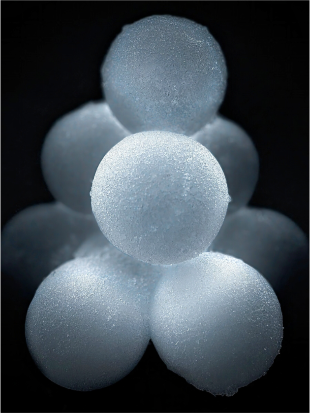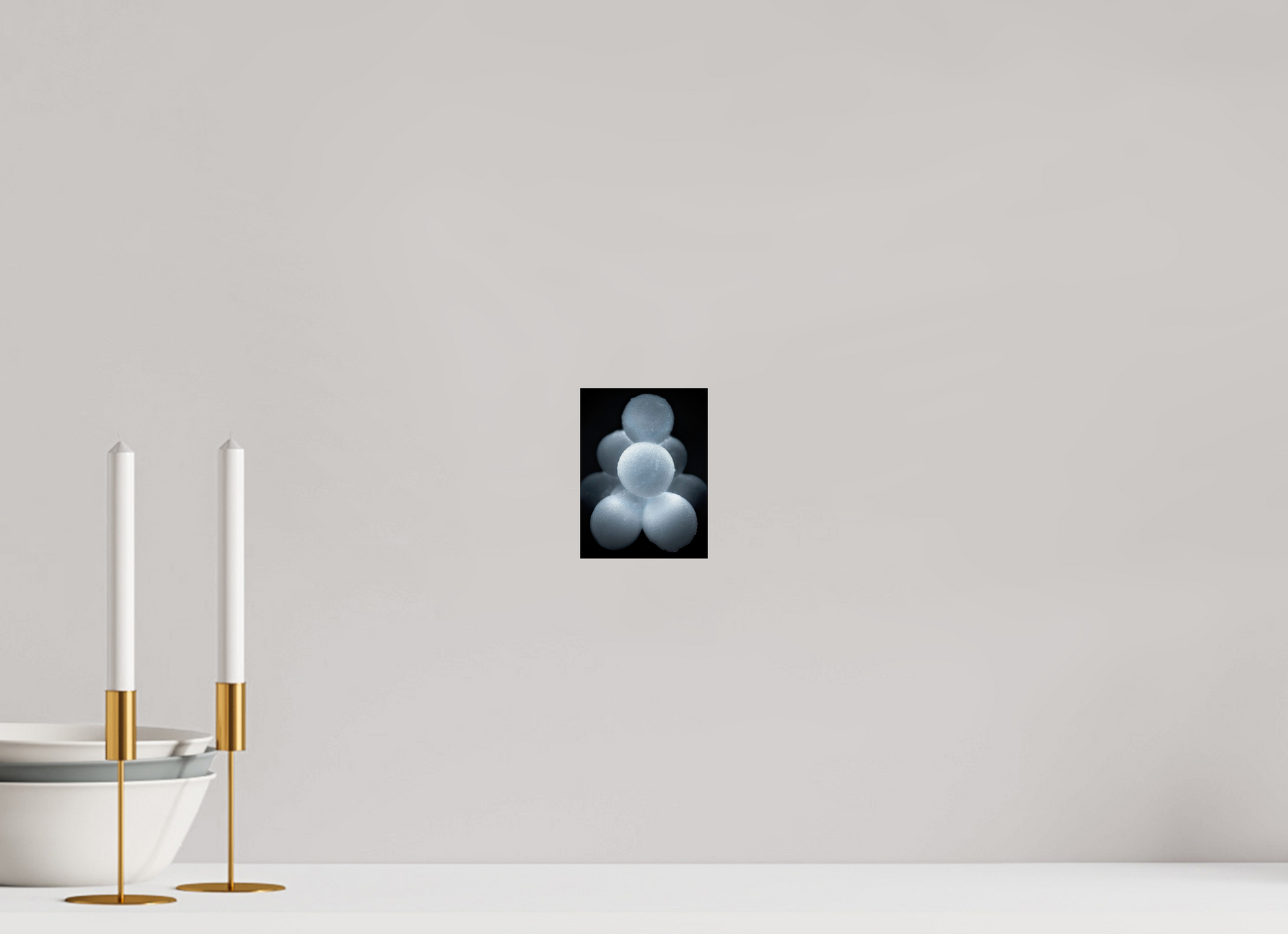 Cette oeuvre présente un agencement captivent de sphères translucides, illuminées pour créer un effet éthéré. Les formes géométriques, doucement empilées, évoquent une sensation de légèreté et de sérénité. Le contraste entre la lumière et l'obscurité accentue la texture délicate des sphères, rendant hommage à la beauté minimaliste. cette composition invite le spectateur à contempler la simplicité et l'harmonie des formes, tout en suscitant une réflexion sur la fragilité et la transparence.
