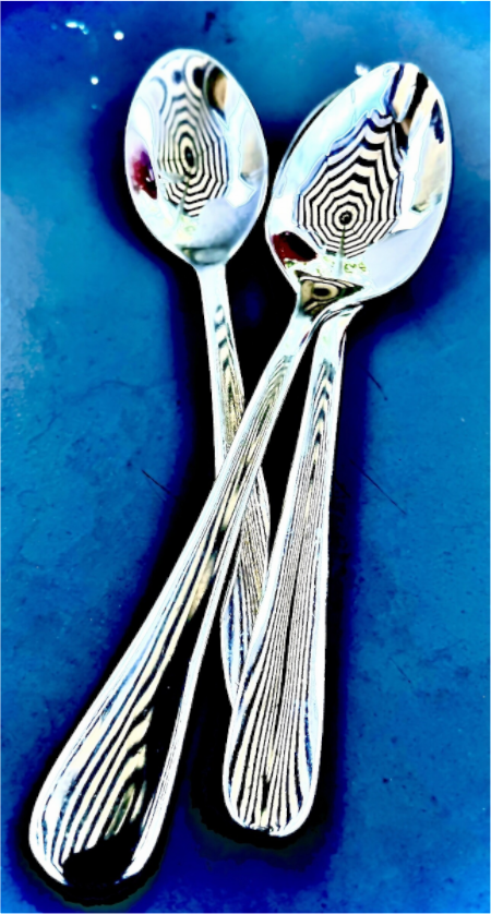 Dans cette œuvre, j'ai capturé l'essence réfléchissante et intriguante des cuillères, transformant des objets quotidiens en vecteurs de mystère et de beauté. Les motifs ondulants et les reflets capturés offrent une nouvelle perspective, invitant à la réflexion sur les objets communs qui nous entourent. C'est une pièce qui apporte une énergie de contemplation et de surprise visuelle à toute maison.