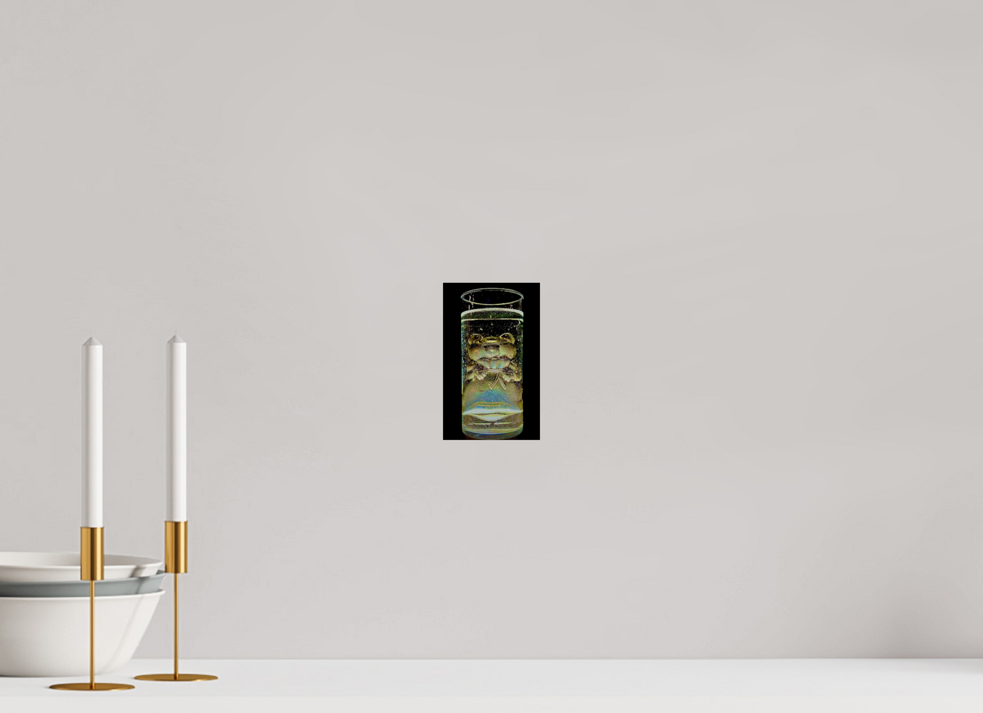 Cette oeuvre captivante emprisonne un ourson doré dans un cylindre de verre, comme figé dans une éternité liquide. Les jeux de lumière irisée caressent sa surface, révélant une aura mystique et presque sacrée. Chaque reflet semble raconter une histoire silencieuse, une mémoire figée entre transparence et éclat métallique. Le contraste entre l'innocence de la forme et l'étrangeté du médium crée une tension poétique et troublante. C'est un fragment de tendresse cristallisé, suspendu hors du temps, dans un monde où douceur et mystère se confondent.