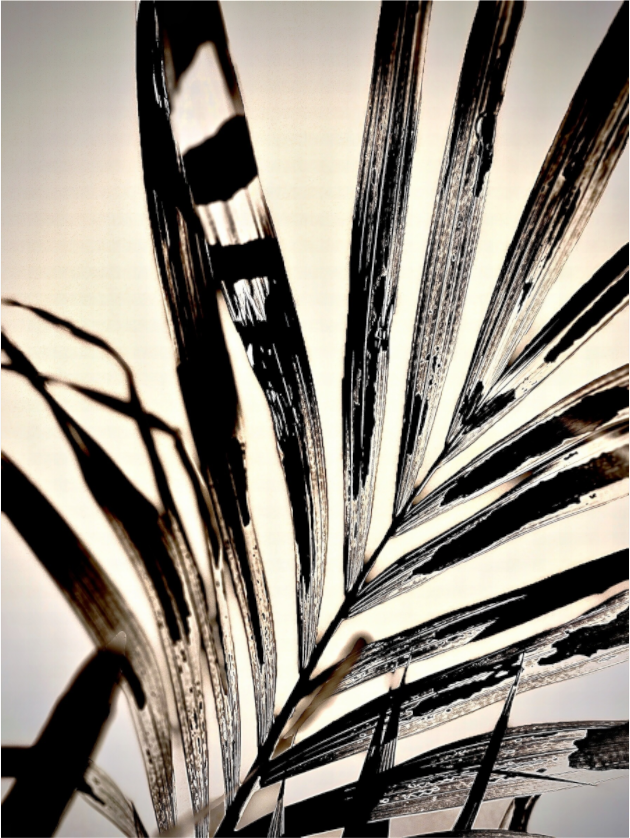 Cette oeuvre met en avant la délicatesse des feuilles à travers un jeu de lumière et d'ombre. Les lignes fluides et les textures contrastées créent une composition dynamique, évoquant à la fois l'élégance et la force de la nature. La palette monochrome accentue les détails des feuilles, transforment chaque contour eu un élément graphique captivant. Cette exploration visuelle invite à une contemplation de la beauté organique et de la simplicité des formes naturelles.