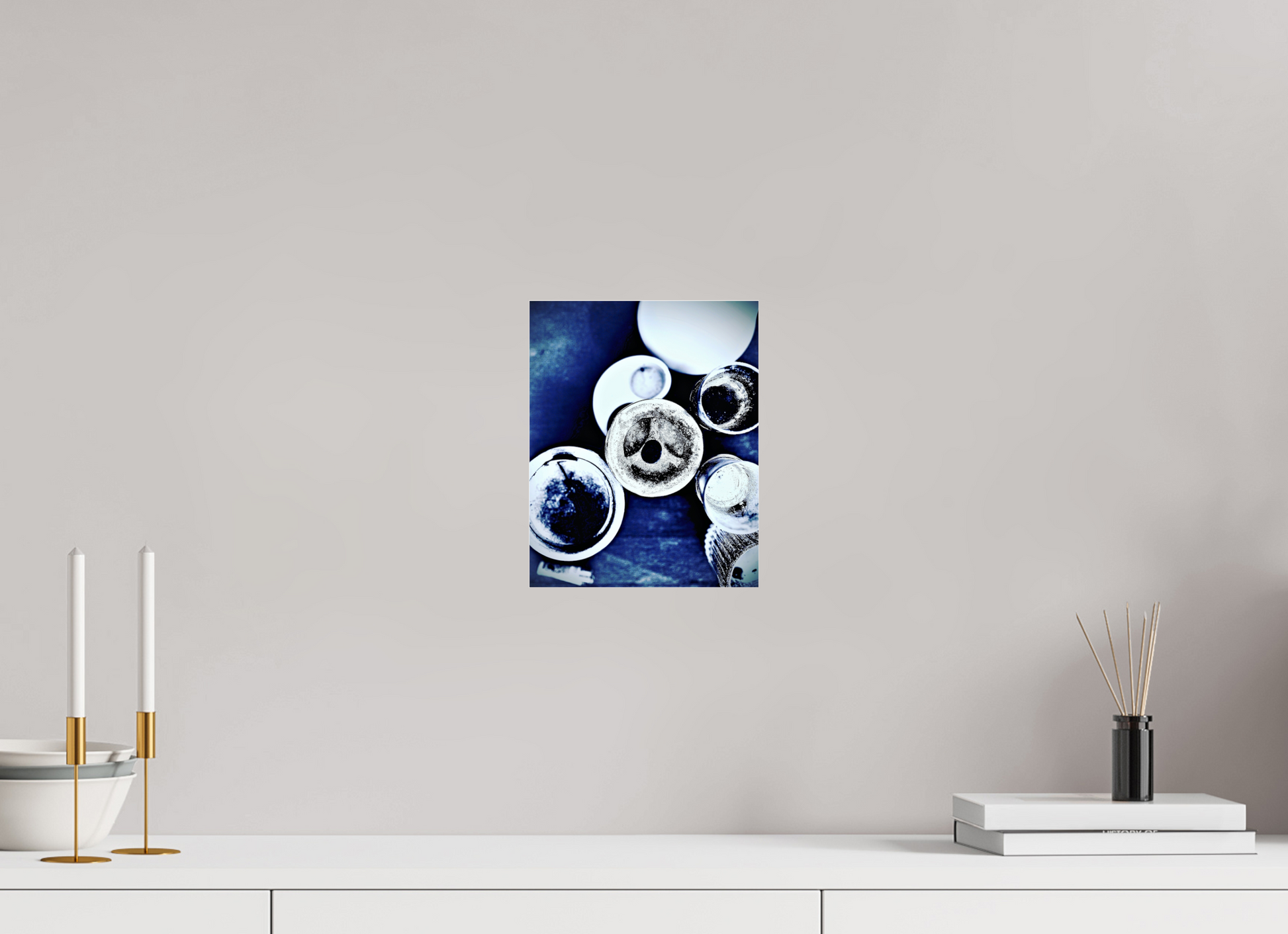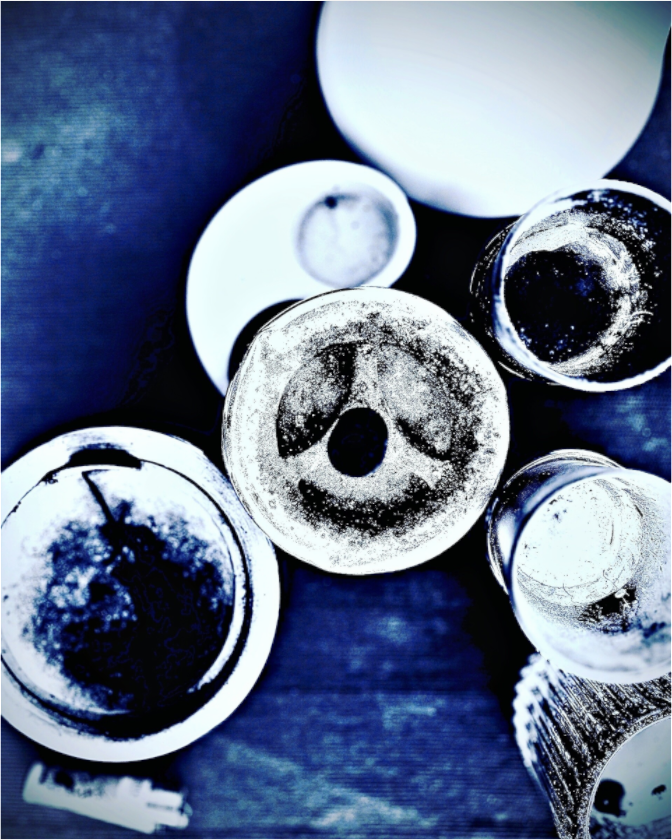 Cette oeuvre présente une composition abstraite de divers objets en métal, capturant des formes circulaires et des textures variées. Les reflets et les ombres créent un jeu de lumière dynamique, tandis que le fond sombre accentue les détails des surfaces. L'ensemble évoque une exploration visuelle des matériaux, invitant le spectateur à contempler la beauté cachée dans la simplicité des objets de quotidien.